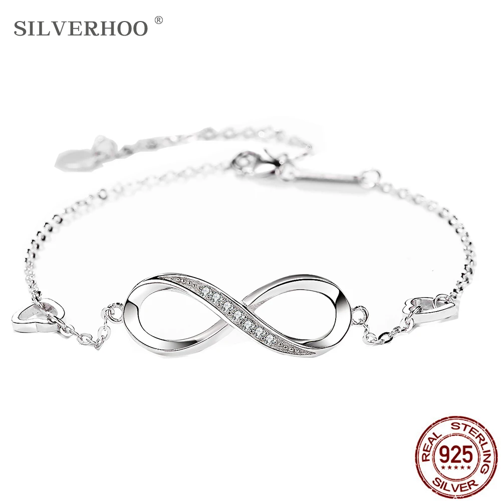 Женский браслет с цирконием SILVERHOO, браслет из стерлингового серебра 925 пробы с регулируемой подвеской, свадебный подарок