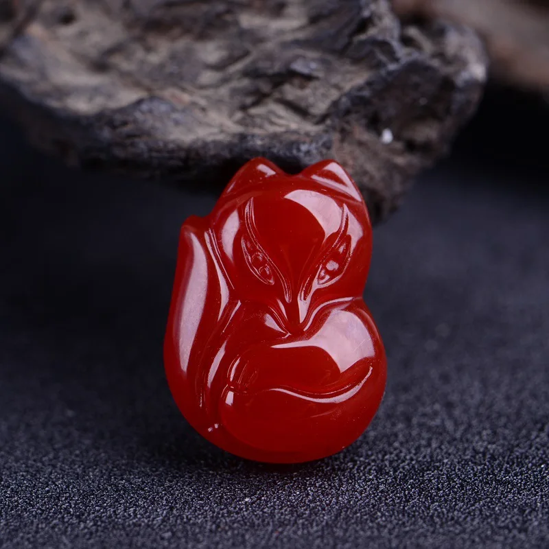 KYSZDL красивый красный камень резной кулон лисы для мужчин и женщин Модный кристалл благоприятный кулон ожерелье ювелирные изделия подарки