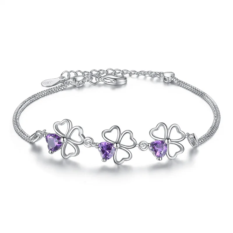100% Стерлинговое Серебро 925 пробы, модные блестящие фиолетовые женские браслеты с листом кристаллов, ювелирные изделия, оптовая продажа, женский подарок на день рождения, Прямая поставка