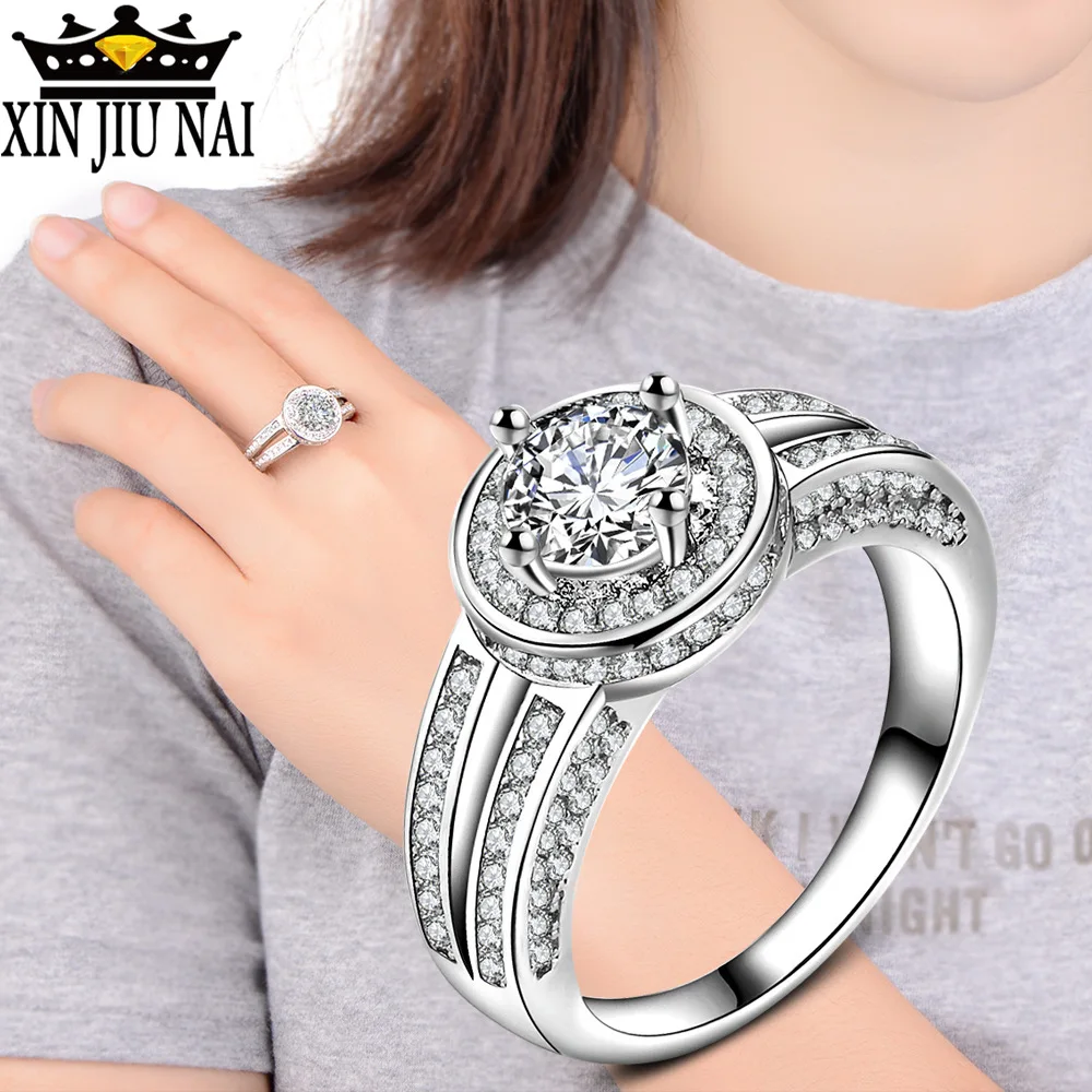 Jemmin классический Обручение кольцо для Для женщин подарки ко дню Валентина Модные с чешскими кристаллами Серебро 925 среднее кольцо фианит об...