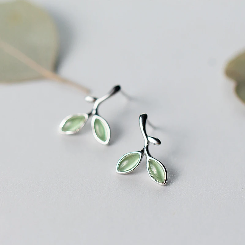 Colusiwei летние зеленые листья серьги-гвоздики в форме растения для женщин натуральный перидот серьги-гвоздики Аутентичные стерлингового сер...