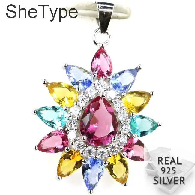 Гарантированное Настоящее серебро 925 пробы 3,3 г красочные большой бирюзовый Перидот Танзанит цитриновый кулон 34x25 мм