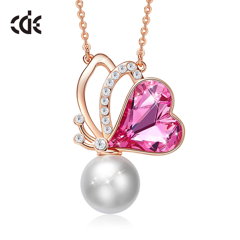 CDE женское золотое ожерелье украшено кристаллами Сваровски, подвеска в виде бабочки, розовое золото