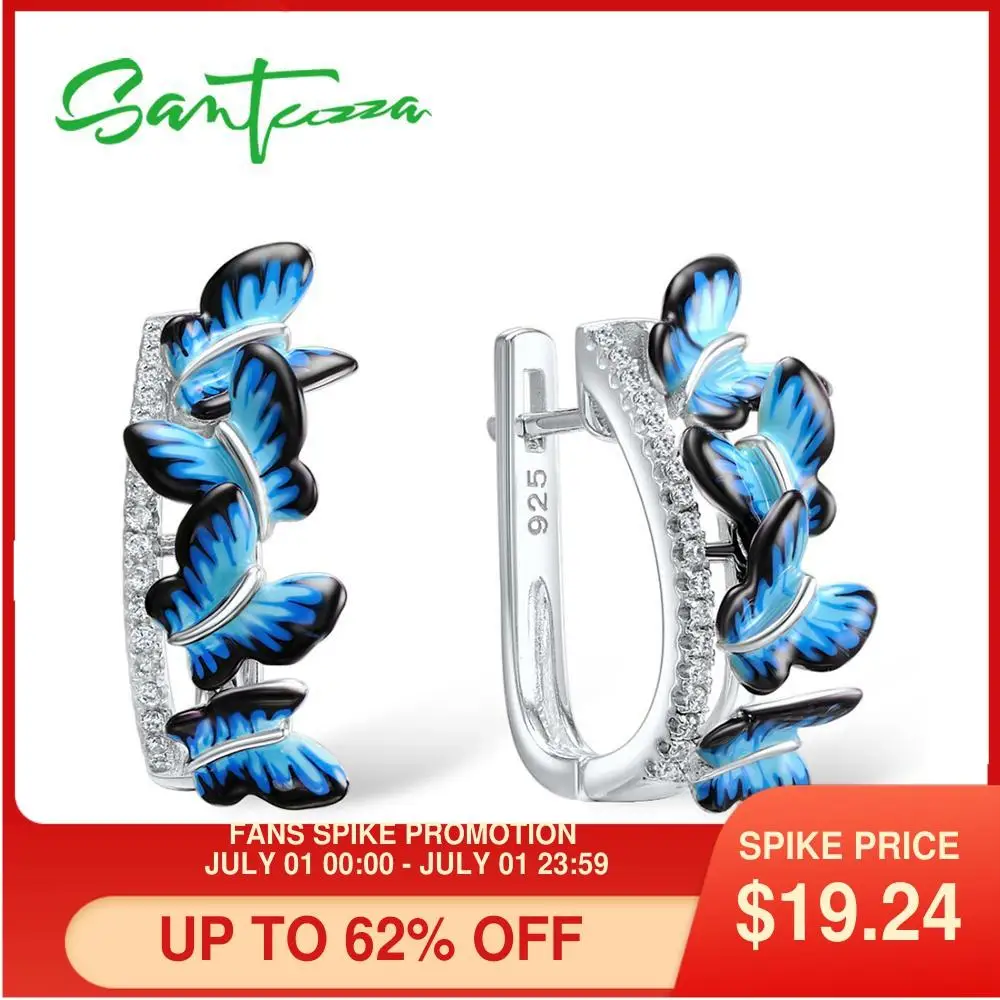 Женские серебряные серьги-гвоздики SANTUZZA, серьги-бабочки из стерлингового серебра 925 пробы с кубическим цирконием, ювелирные изделия из эмали