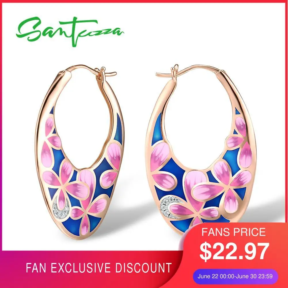 SANTUZZA, серебряные серьги для женщин, натуральная 925 пробы, серебро, розовое золото, нежный розовый цветок, хорошее ювелирное изделие ручной ра...