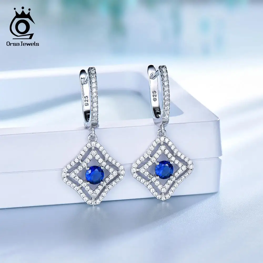ORSA JEWELS Чистое Серебро Большой Сапфир Женские Висячие серьги с прозрачным цирконием 32 мм длинные новые трендовые нежные ювелирные изделия VSE08
