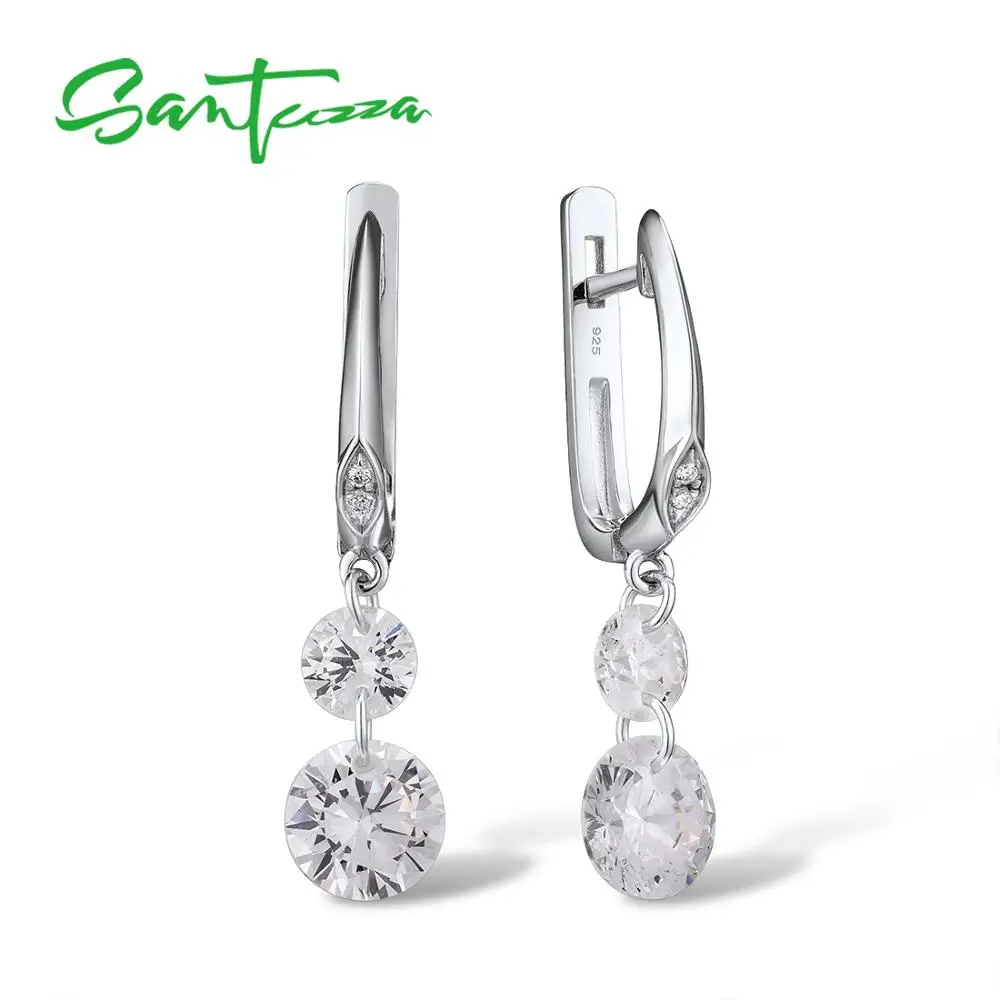 Женские серебряные сережки SANTUZZA, из чистого серебра 925 пробы, сверкающие серьги с белым кубическим цирконием, элегантные ювелирные украшения