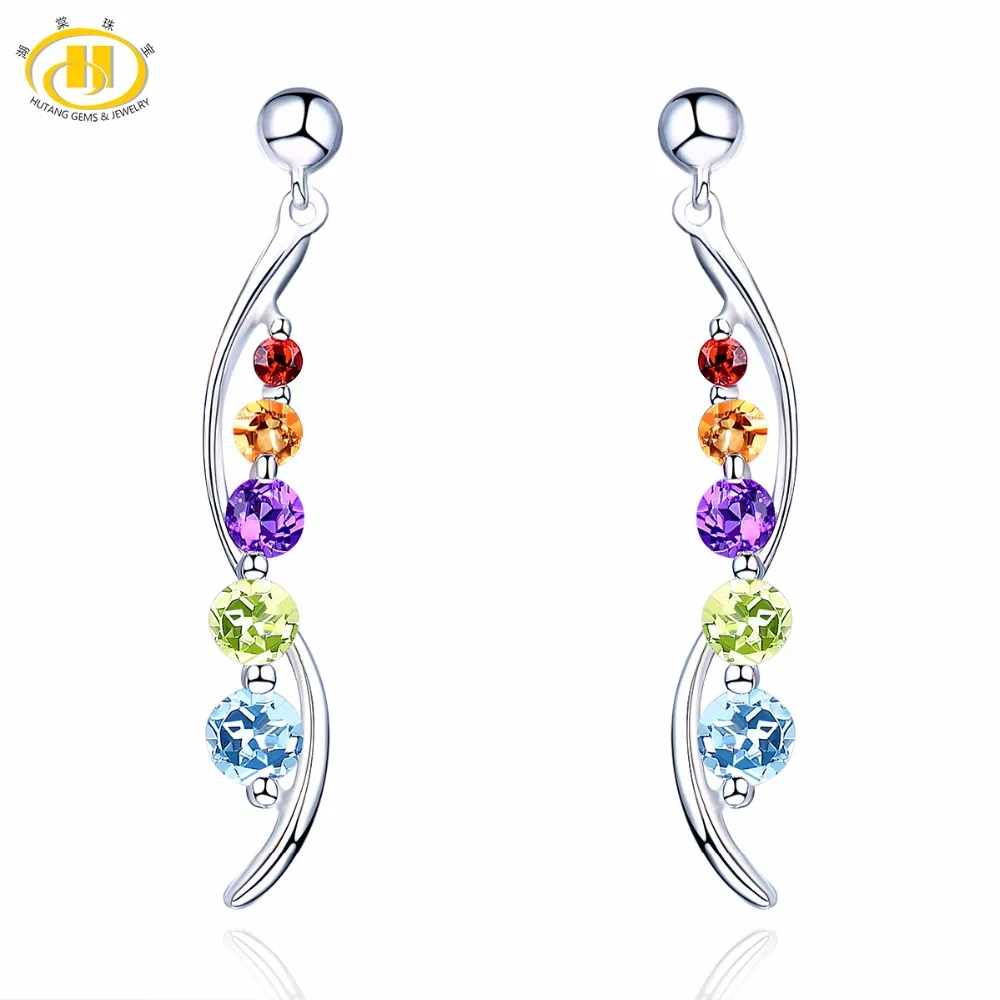 Hutang с большим количеством камней ювелирные изделия с натуральными камнями аметист голубой топаз Серебро 925 пробы Серьги-горошины ювелирных...