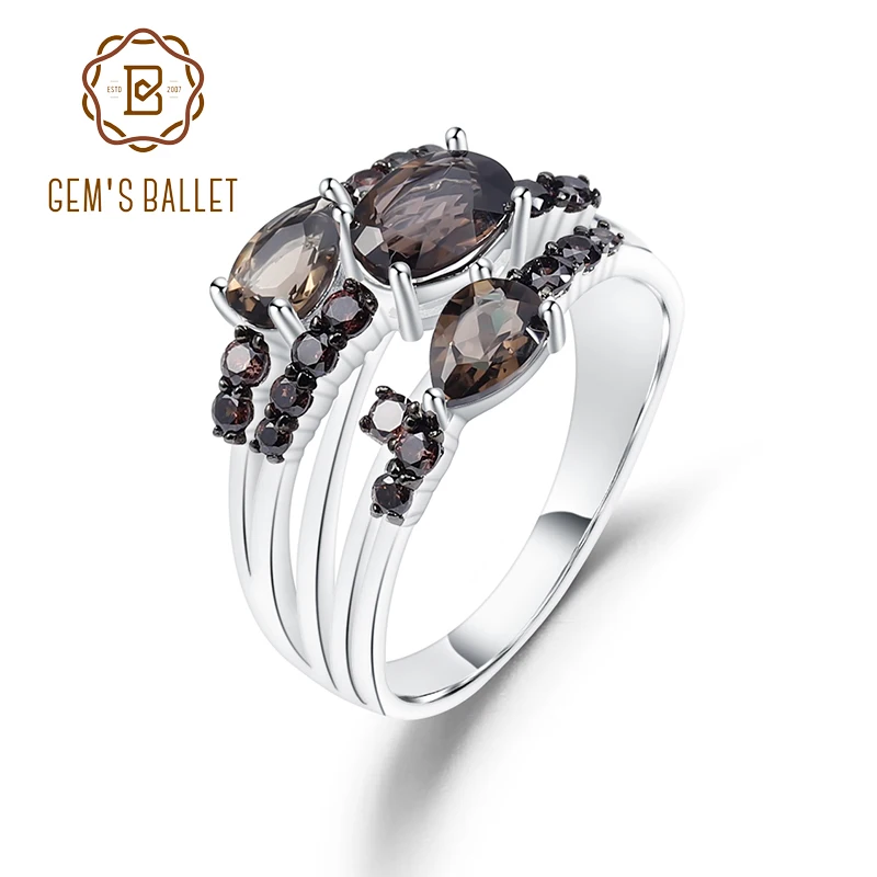GEM'S BALLET Настоящее 925 пробы серебро Классический драгоценный камень кольцо 1.62Ct Натуральный дымчатый кварц камень кольца для женщин ювелирны...