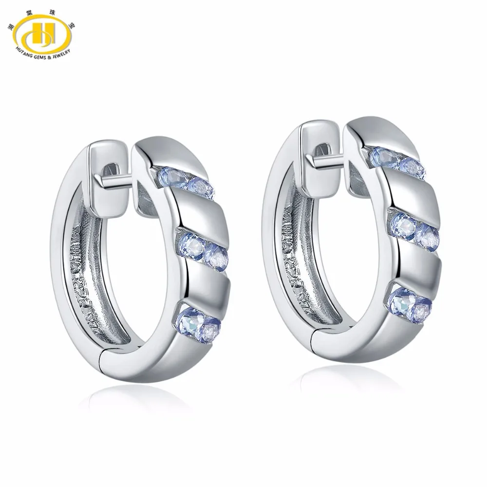 Hutang обруч с камнем серьги натуральный драгоценных камней танзанит серебро 925 пробы Для женщин модная одежда для девочек Стиль Fine Jewelry подаро...