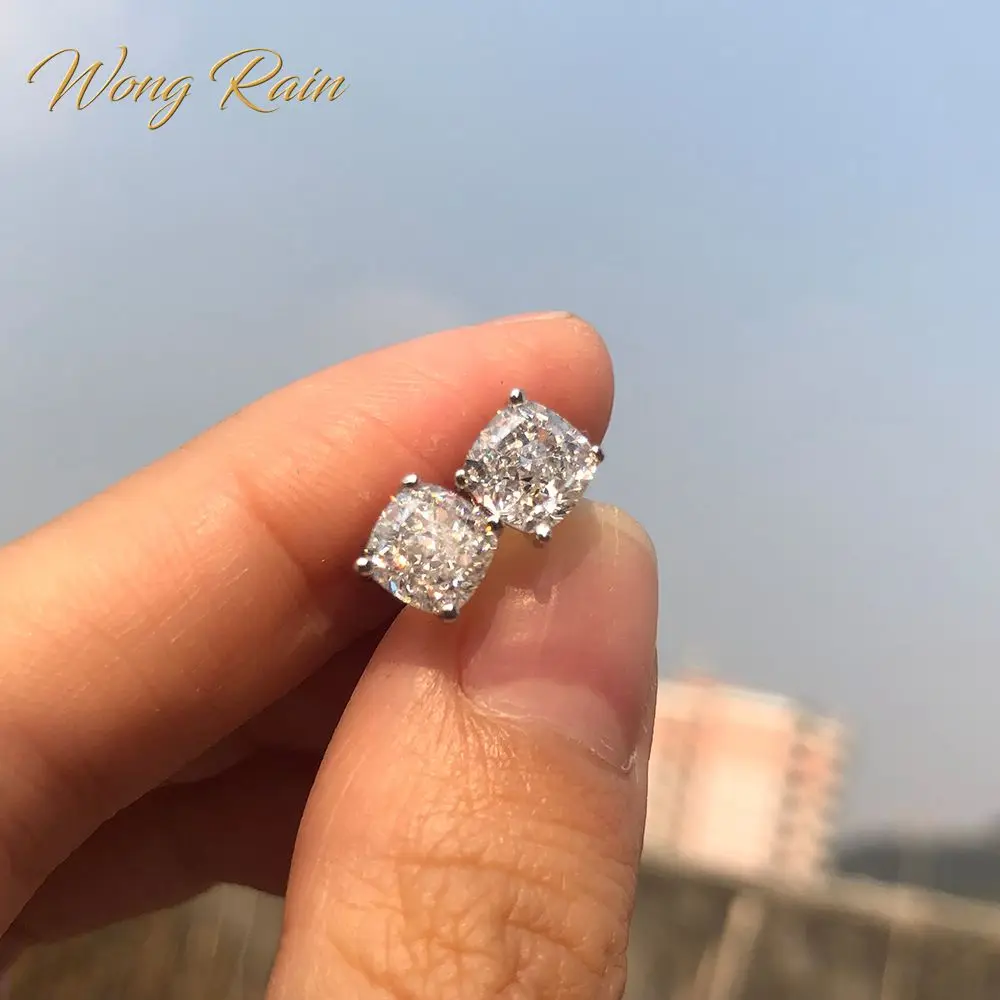 Wong Rain, классика 100%, 925 серебро, создан Муассанит, драгоценный камень, для свадьбы, помолвки, серьги-гвоздики, хорошее ювелирное изделие, оптовая продажа