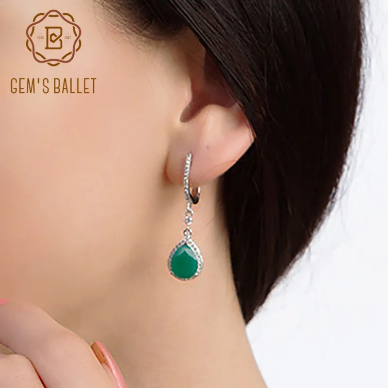 Gem's Ballet 5.28Ct натуральный зеленый агат, натуральный камень, Винтажные висячие серьги, женские 925 пробы серебряные серьги, хорошее ювелирное из...