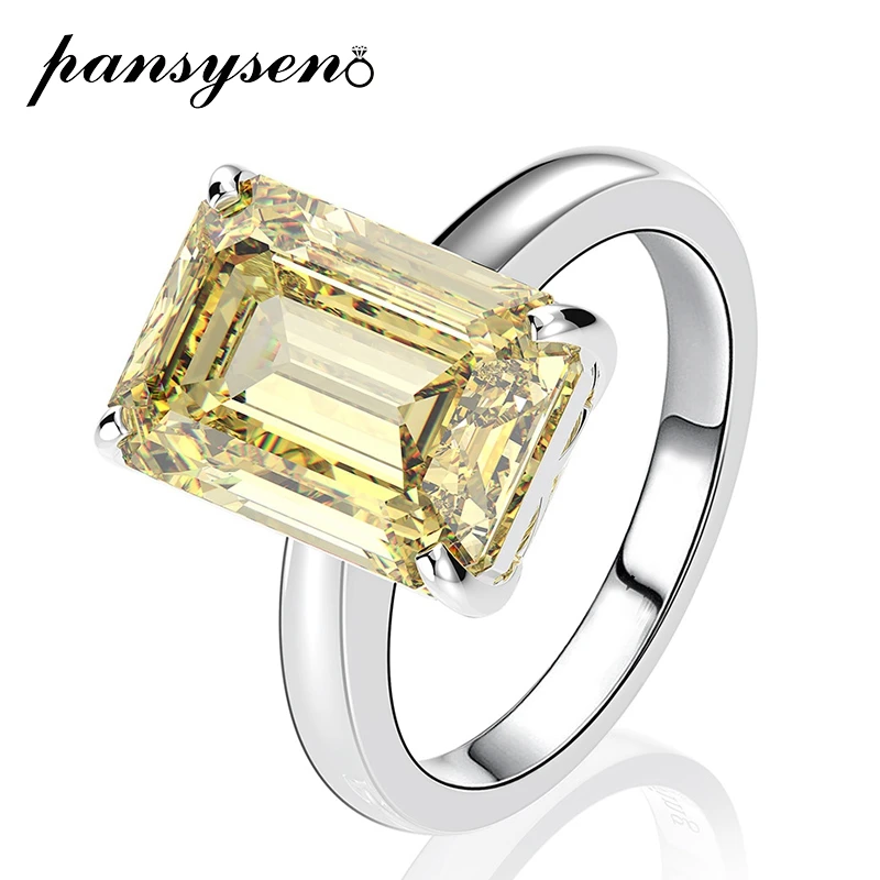 PANSYSEN, новая мода, 12x14 мм, цитрин, кварц, драгоценный камень, кольца, твердые, 925 пробы, серебро, для женщин, для свадьбы, помолвки, хорошее ювелир...