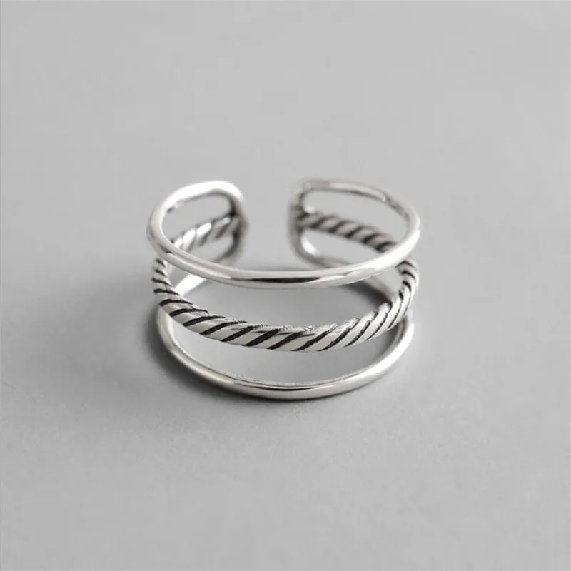 Новые темпераментные панк Twist полые двойные 925 пробы серебряные ювелирные изделия дикая Личность Открытие кольцо s SR51