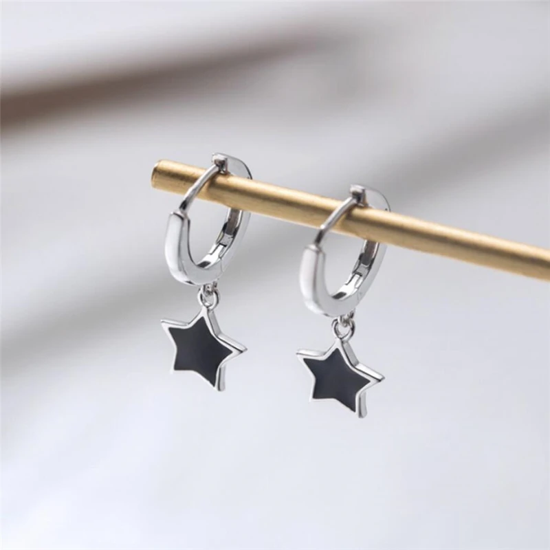 Женские Висячие серьги SEA721, с черной глазурью, пентаграммой, простые, милые, из стерлингового серебра 925 пробы