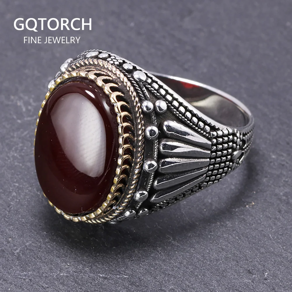 Настоящие 925 пробы серебряные мужские кольца с тигровым глазом, натуральные камни, большие винтажные кольца, турецкие ювелирные изделия