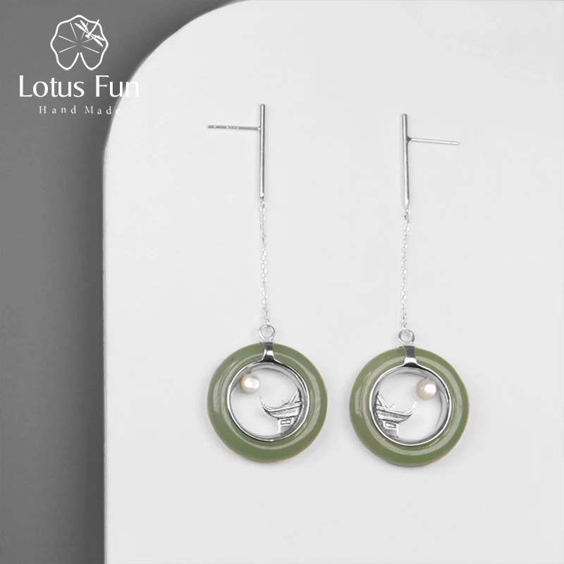 Lotus Fun реальные 925 серебро ручной работы Ювелирные украшения классический Восточный элемент лунный свет Дизайн Висячие серьги для Для женщи...