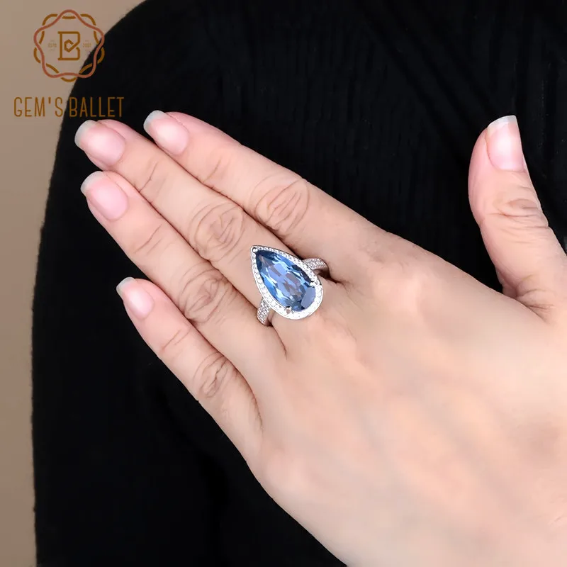 Gem's Ballet 7.89Ct натуральный иолит синий мистик кварц кольцо 925 пробы серебро драгоценный камень капли воды, кольца для женщин ювелирные изделия