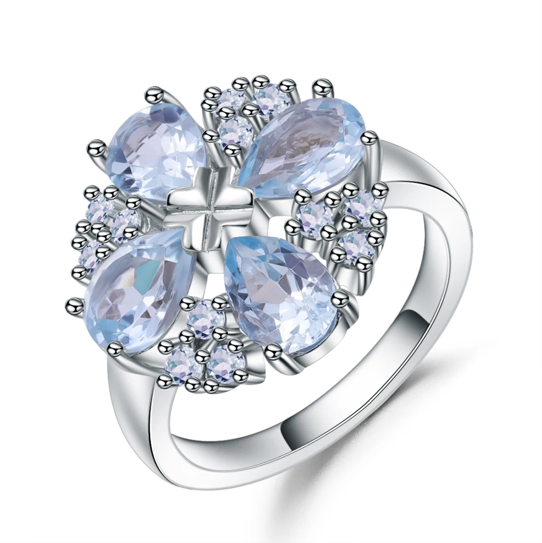 Gem's Ballet, 100% 925 пробы, серебряное кольцо для женщин, подарок, 3.74Ct, натуральный голубой топаз, драгоценный камень, цветок, кольцо, хорошее ювелир...