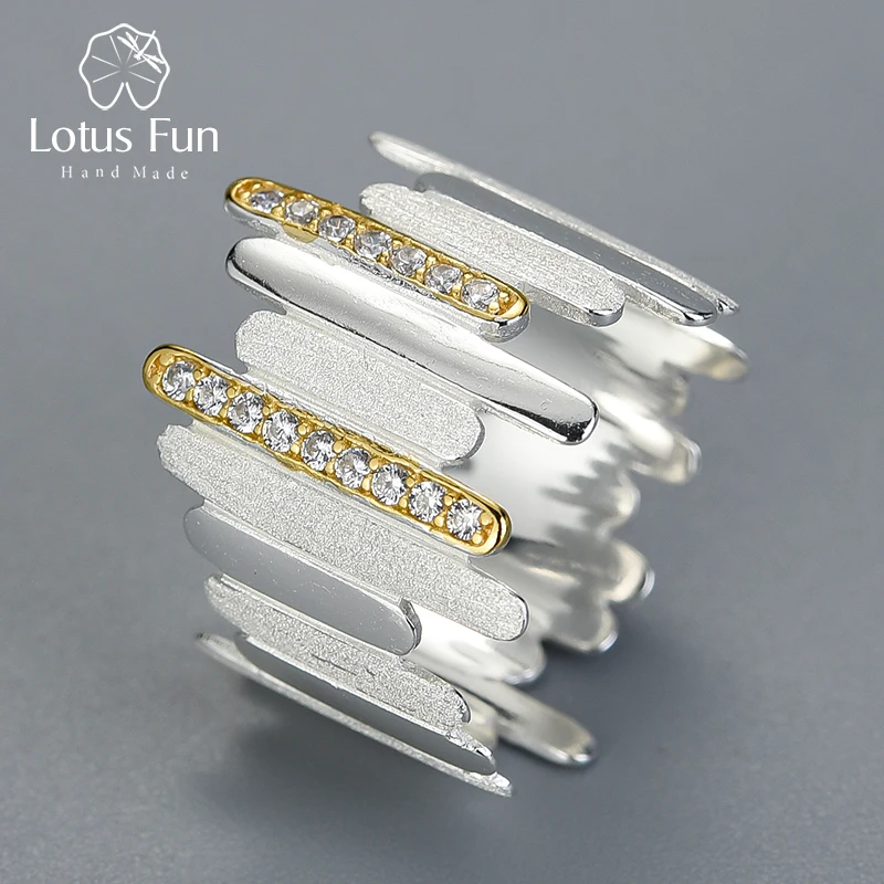 Lotus Fun реальные 925 пробы серебро ручной работы натуральный циркон ювелирные украшения творческий минималистский стиль параллельные линии к...