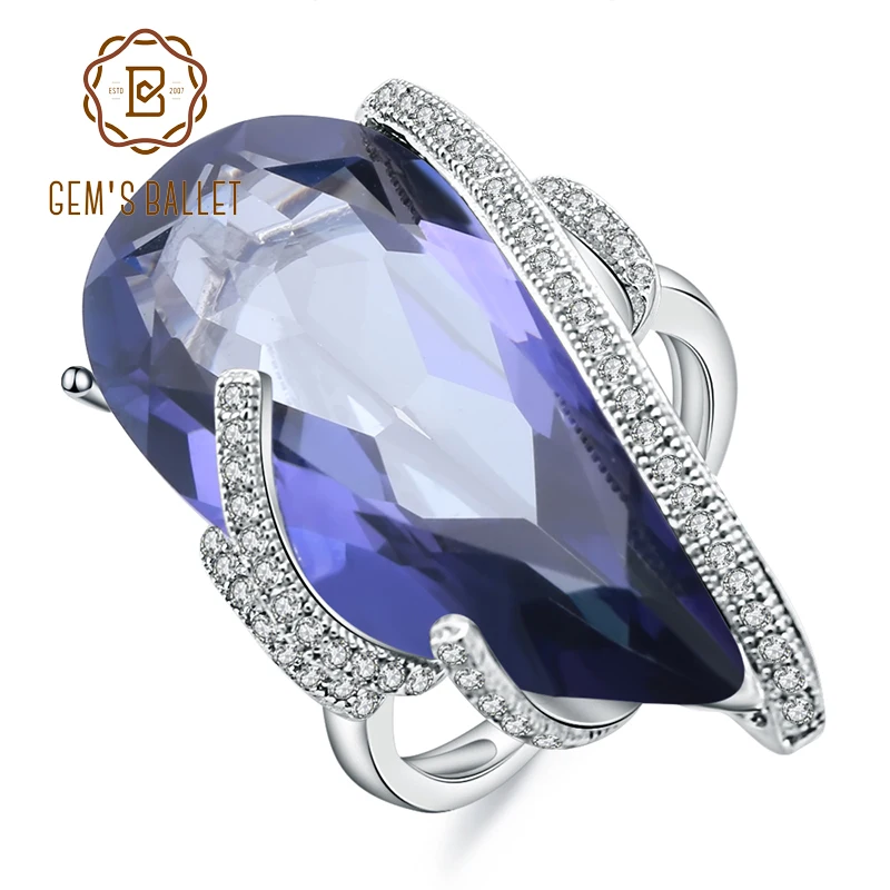 Gem's Ballet, 20Ct, натуральный иолит, голубой мистик, кварц, кольцо, 925 пробы, серебро, Винтаж, Коктейльные кольца для женщин, хорошее ювелирное издел...