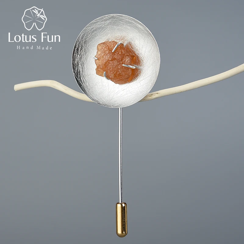 Lotus весело Настоящее 925 пробы серебро натуральный камень ручной работы оригинальные ювелирные украшения Личность Круглый броши для женщи
