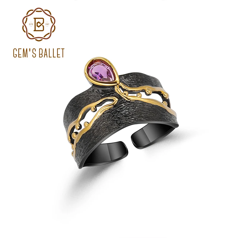 Женское кольцо с регулируемой лентой GEM'S BALLET, серебро 925 пробы, ручная работа, золотой бисер, медовая капля, треугольник, натуральный аметист