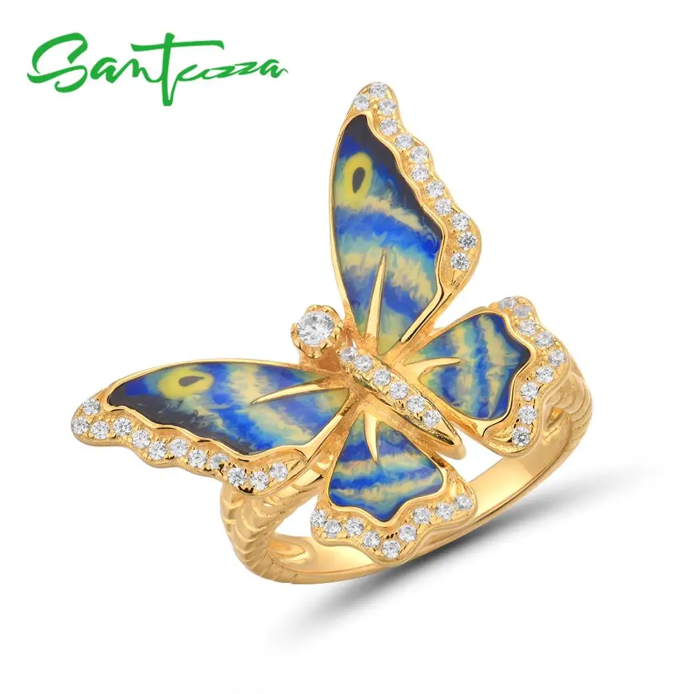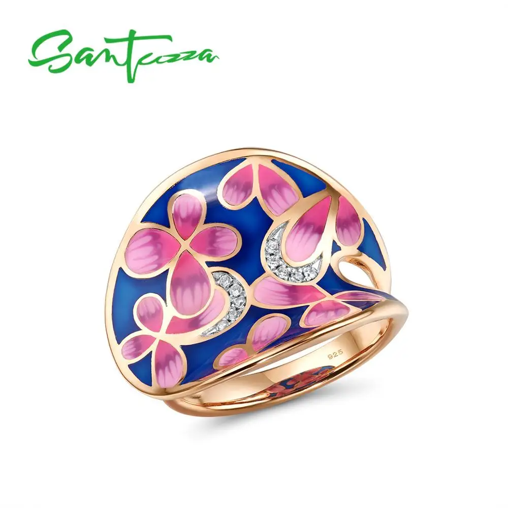 SANTUZZA серебряные кольца для женщин из натуральной 925 пробы Серебряные Красочные эмаль сверкающие CZ модные вечерние ювелирные изделия ручной...