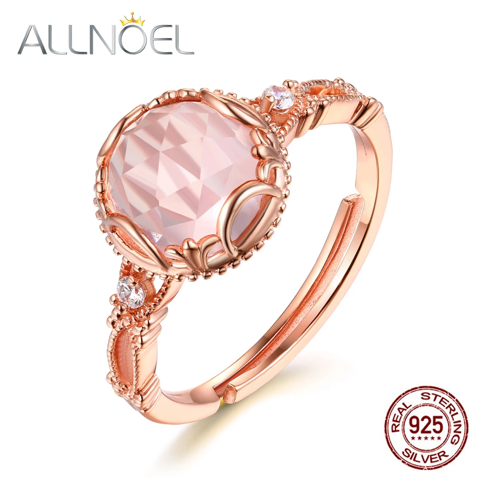 ALLNOEL Настоящее серебро 925 проба кольцо для женщин обручение 8 мм круглый розовый кварц ювелирные изделия мода Ringen ювелирные аксессуары