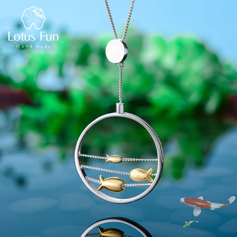 Lotus Fun реальные 925 серебро ручной работы Ювелирные украшения креативные милые перемещение Happy рыбки кулон без Цепочки и ожерелья для Для женщ...