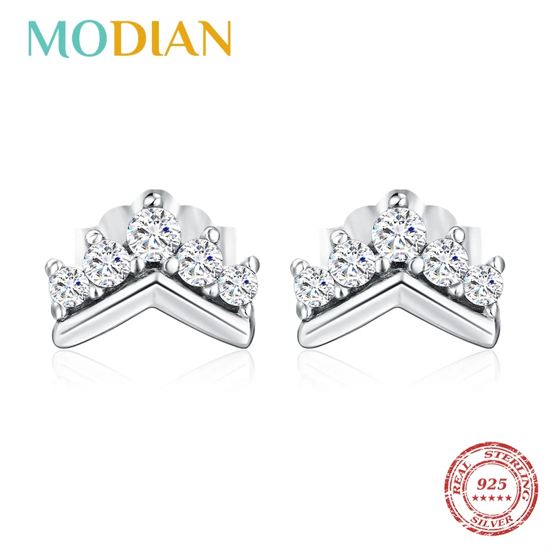Женские серьги-гвоздики Modian, простые прозрачные серьги-гвоздики из 100% стерлингового серебра 925 пробы, вечерние ювелирные изделия в подарок на Рождество, 2020