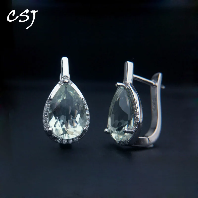 CSJ элегантный натуральный зеленый аметист серьги стерлингового серебра 925 Серебряная Груша 8*12 огранка 10 мм 5Ct ювелирные изделия для женщин л...