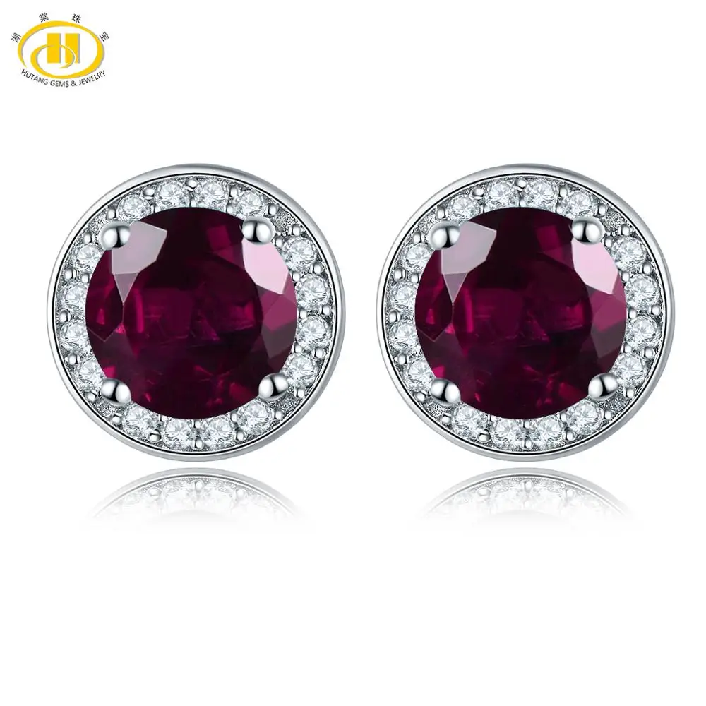 Hutang Круглый Серьги Сделано с 2.16ct природных драгоценных камней родолит гранат серебро 925 пробы ювелирные украшения для женщин подарок