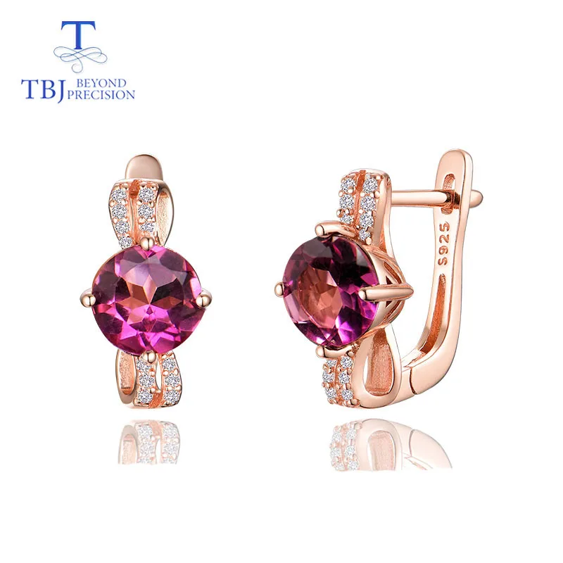 TBJ, простой милый натуральный бразильский розовый топаз, Круглый, 7 мм, 3ct, драгоценный камень, застежка, серьги, 925 пробы, серебро, ювелирные украшения для девочек