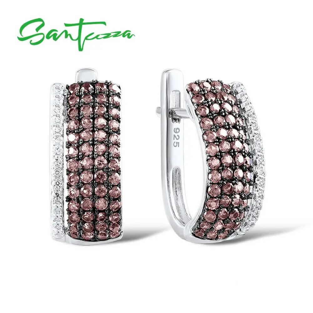 Женские серьги-гвоздики SANTUZZA, круглые серьги из стерлингового серебра 925 пробы с белым кубическим цирконием