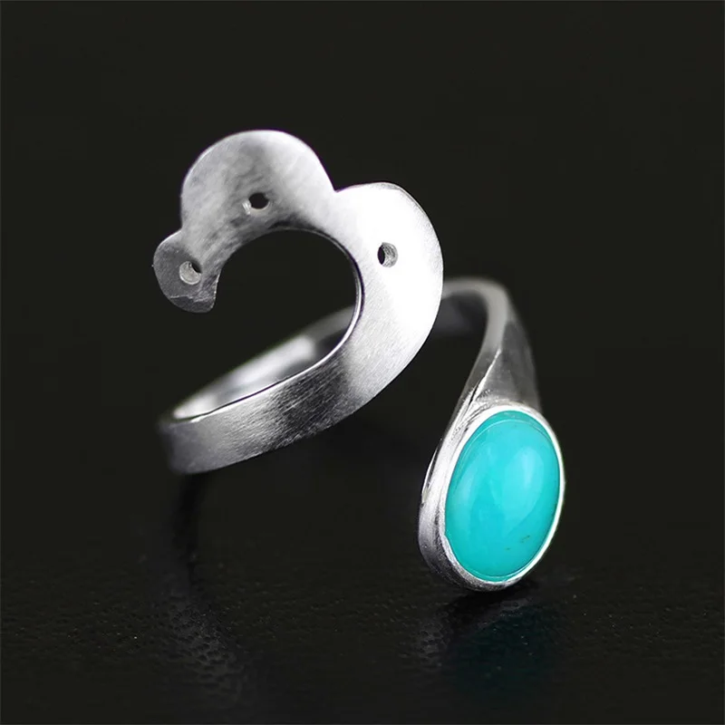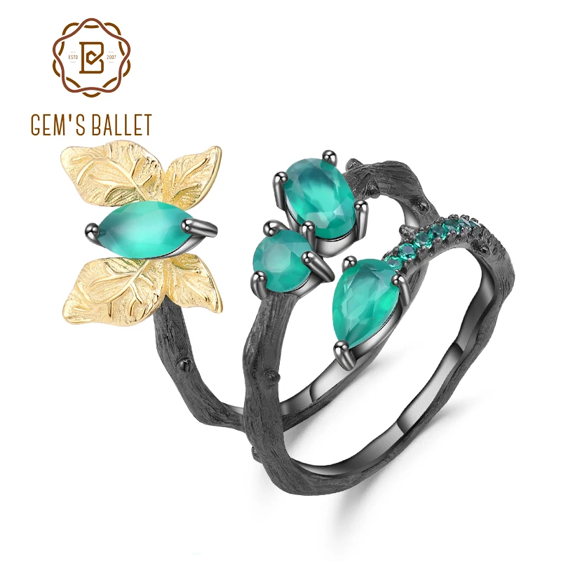 Балетное кольцо для женщин, оригинал, ручная работа, 925 пробы, серебро, Ретро стиль, натуральный зеленый агат, Бабочка, кольцо для женщин, бижу...