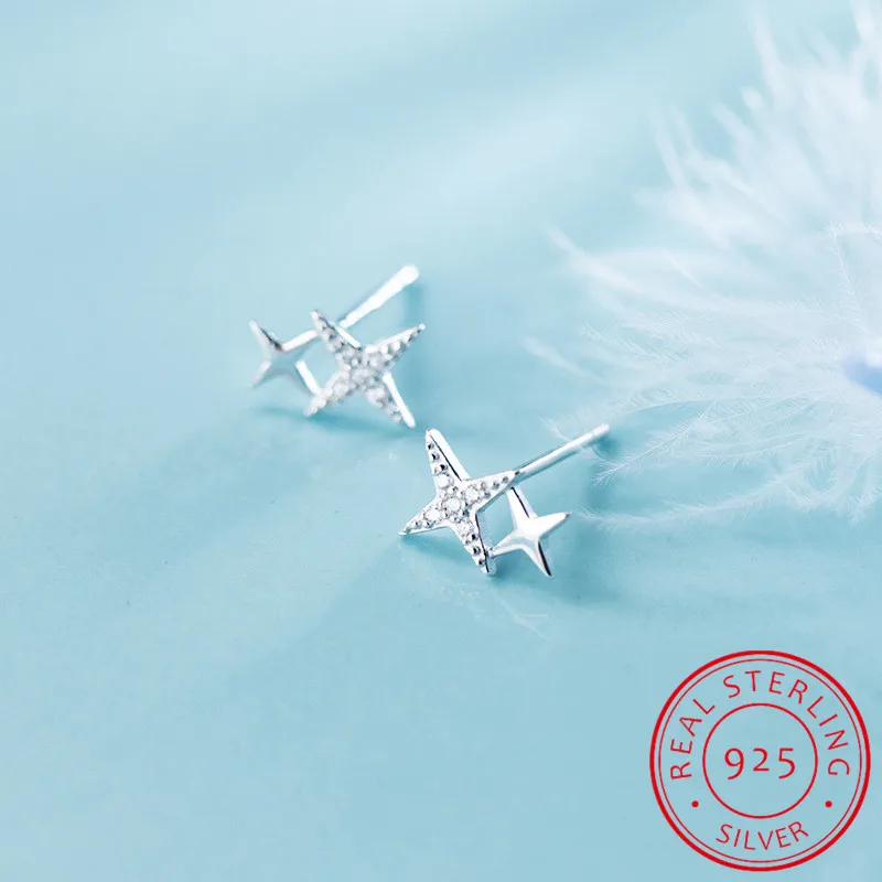 925 пробы серебро, кубического циркония двойная звезда серьги стержня для Для женщин гипоаллергенно леди драгоценные ювелирные изделия