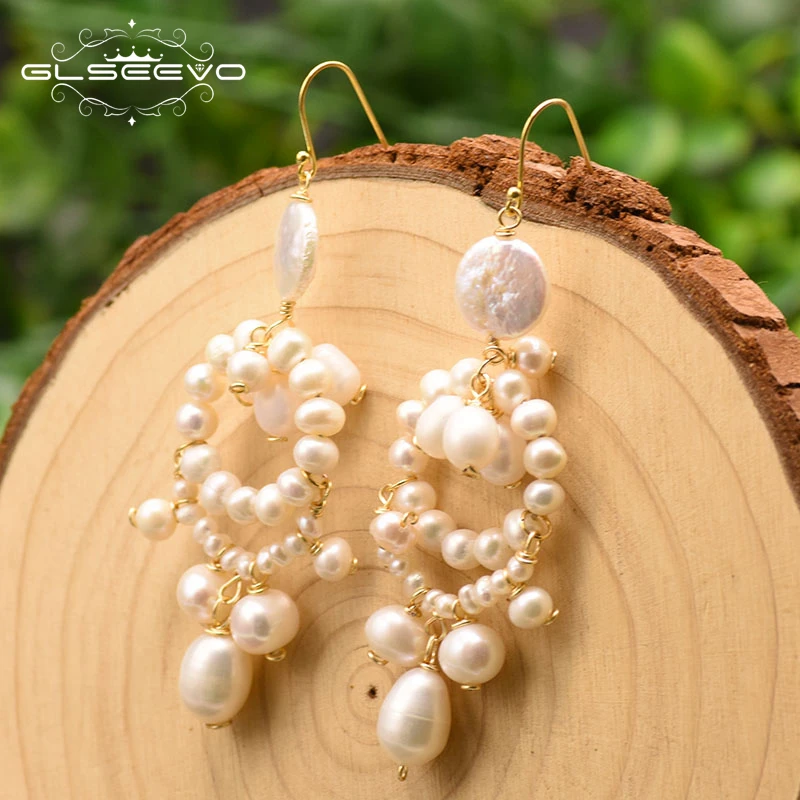 GLSEEVO 100% оригинальные серьги из пресной воды с жемчугом для женщин, для девочек, для дня рождения, вечеринки, роскошный корейский стиль, Серьг...
