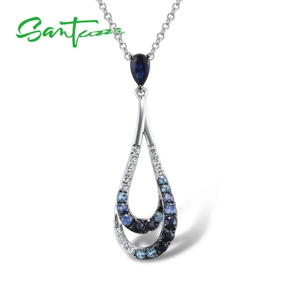 Женское Ожерелье SANTUZZA из чистого 925 пробы серебра, Элегантное ожерелье, Голубой Белый сапфир, голубой топаз, вечерние ювелирные изделия