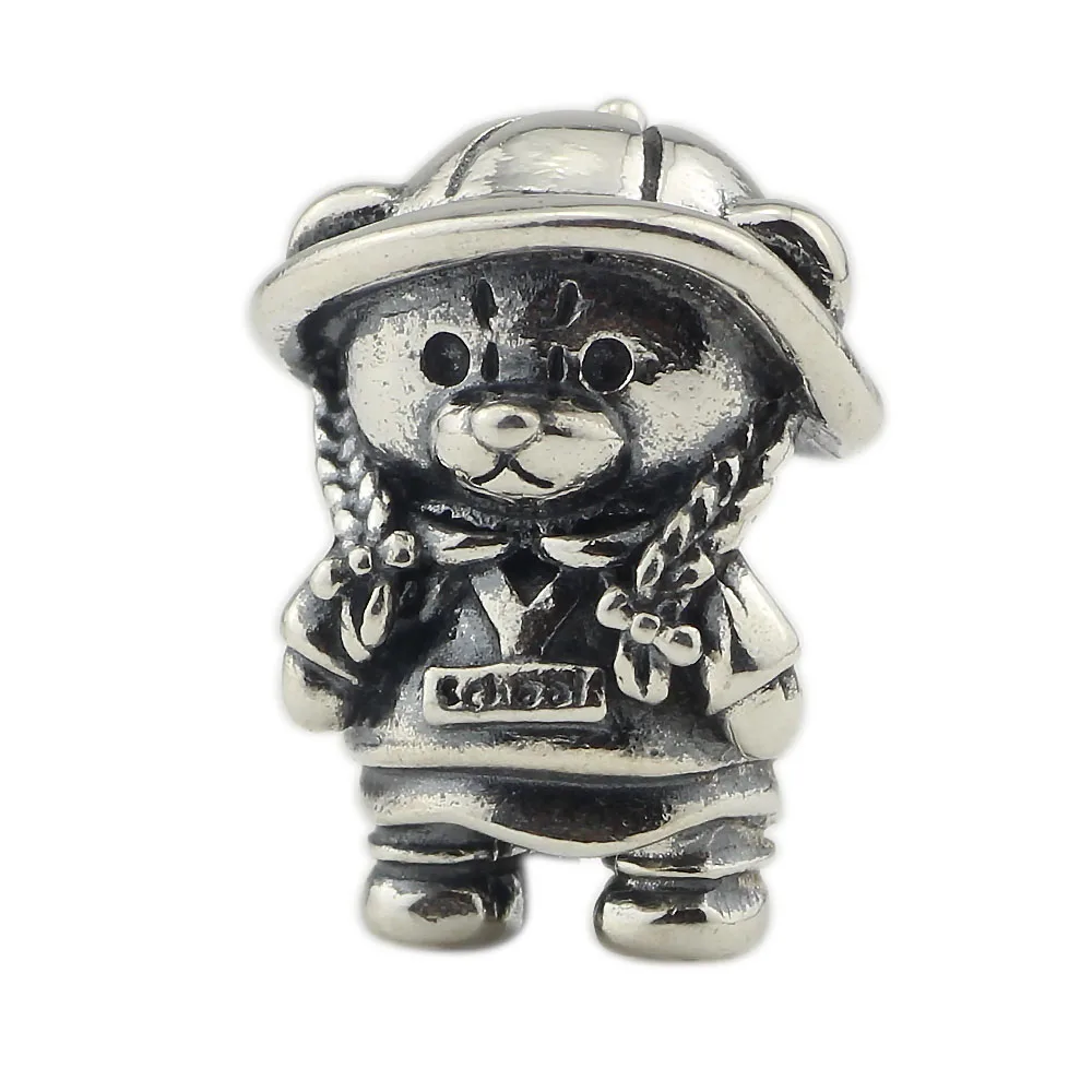 Красивая школьная сумка с медвежатами, оригинальные серебряные шарики 925 пробы, подходят к оригинальному браслету, бижутерии, бусина для изготовления украшений, кулонов