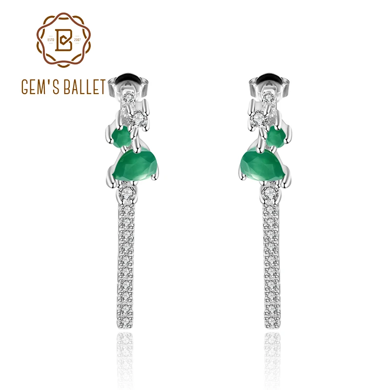 GEM'S балетные 925 пробы, серебряные серьги с драгоценными камнями и кисточками, висячие серьги, натуральный зеленый агат, серьги для женщин, хорошее ювелирное изделие