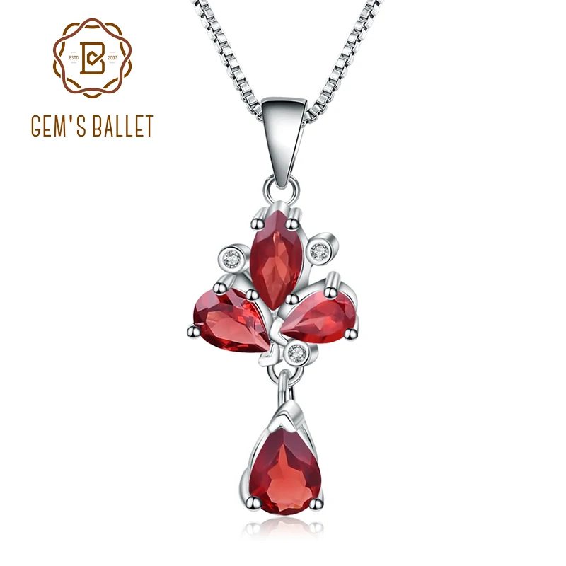Женский балетный кулон GEM'S 3.42Ct из натурального красного граната, подвеска в виде цветка из стерлингового серебра 925 пробы, ювелирные украшения для свадьбы