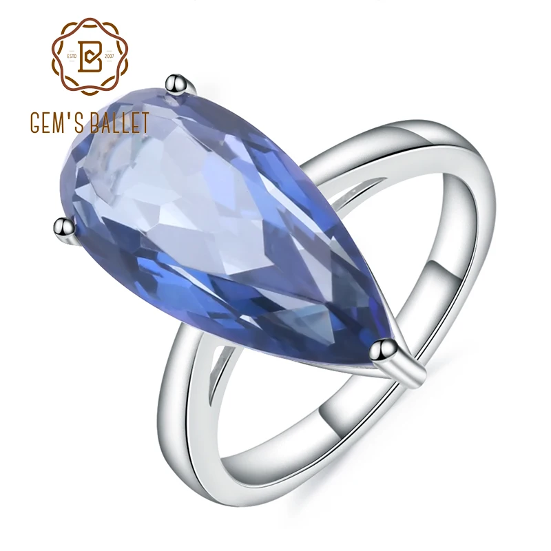 Женское коктейльное кольцо GEM'S BALLET из стерлингового серебра 925 пробы с синим мистический кварцевый камень 7.89Ct, ювелирные украшения