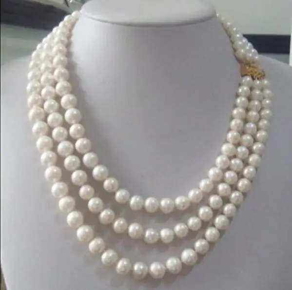 Трехместный strandsAAA 8-9 мм Настоящее Австралийское Южно-морское белое Жемчужное ожерелье 17-19 "14K