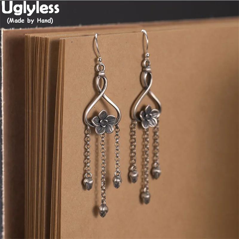 Женские серьги-подвески в этническом стиле с цветком из тайского серебра 925 пробы, винтажное платье, ювелирное изделие