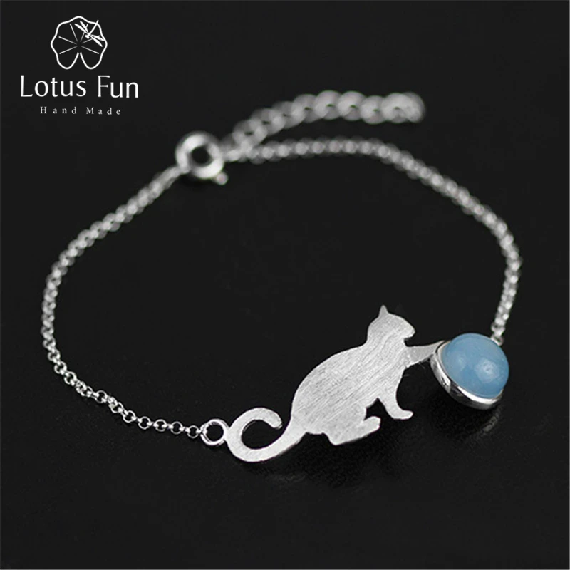 Lotus Fun Реальные Стерлингового Серебра 925 натуральный камень творческий ручной Fine Jewelry игры кот браслет для женщин Bijoux