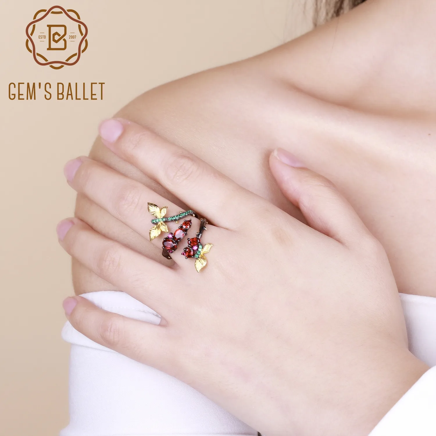GEM'S BALLET 1.81Ct натуральный гранат ветка бабочка кольца для женщин ювелирные изделия 925 пробы серебро Оригинальное открытое регулируемое кольц...