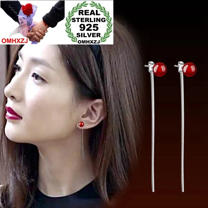 Omhxzj оптовая продажа Простой моды джокер для женщины подарок красные, черные Агат жемчуг 925 пробы серебро долго кисточкой серьги YS249