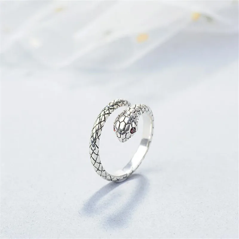 Красивая личность темперамент животное 925 пробы серебряные ювелирные изделия не аллергические Красный Кристалл Змея Открытие Кольца SR232