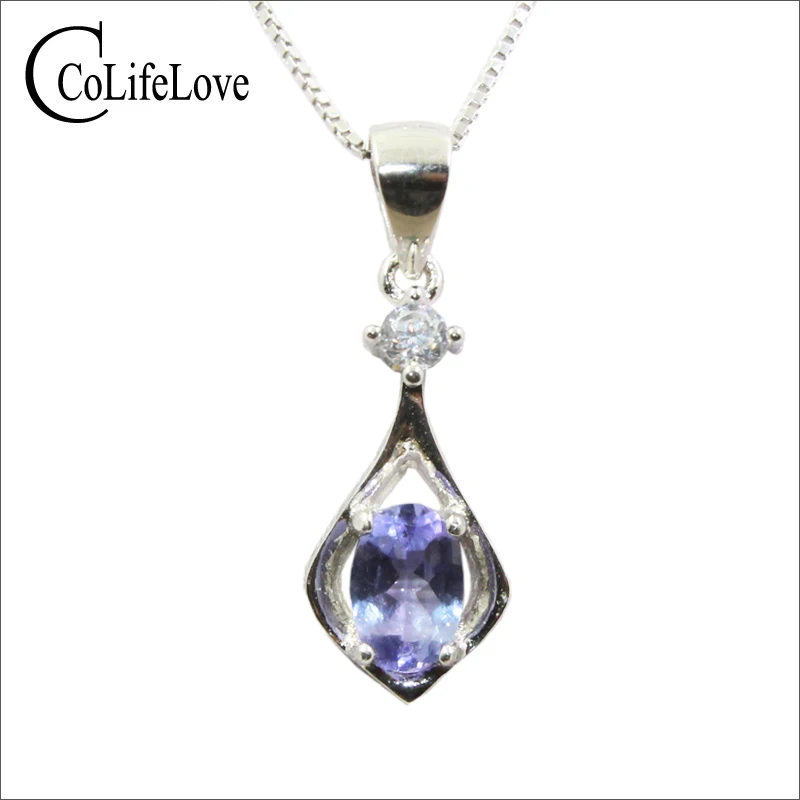 Простой танзанит кулон с ожерельем для женщина 0,5 ct натуральный VVS класса танзанит кулон Твердого 925 silver Танзанит ювелирных изделий